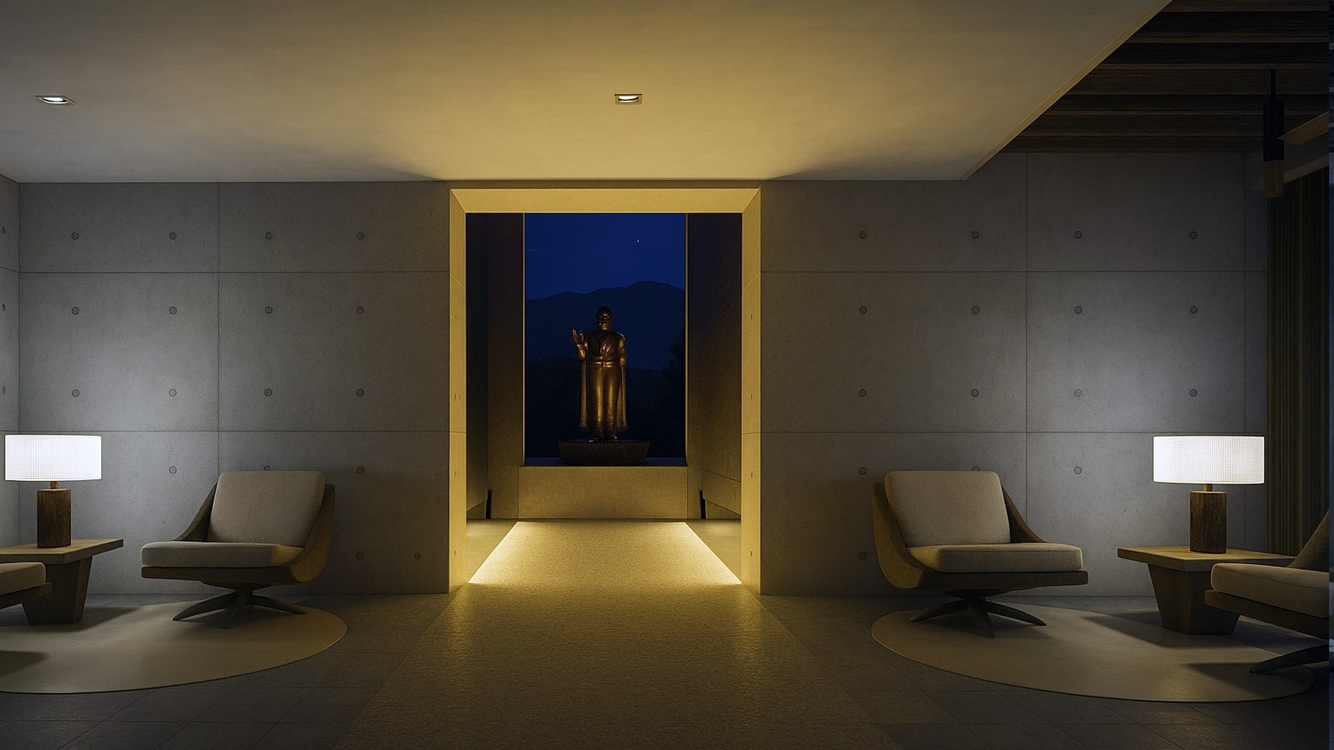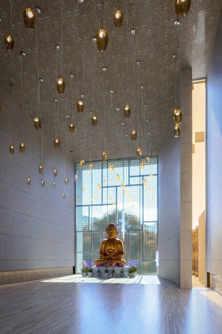 Within the heart of the center lies the meditation hall, a sanctum within a sanctum, where the cool austerity of polished concrete floors meets the organic richness of wooden accents. Here, the air is laced with the scent of incense, intertwining with the gentle caress of the breeze, creating an atmosphere ripe for deep contemplation and inner peace.