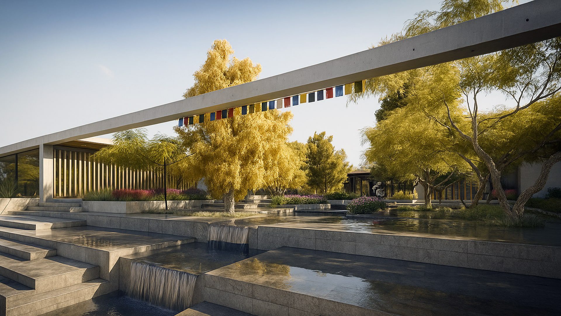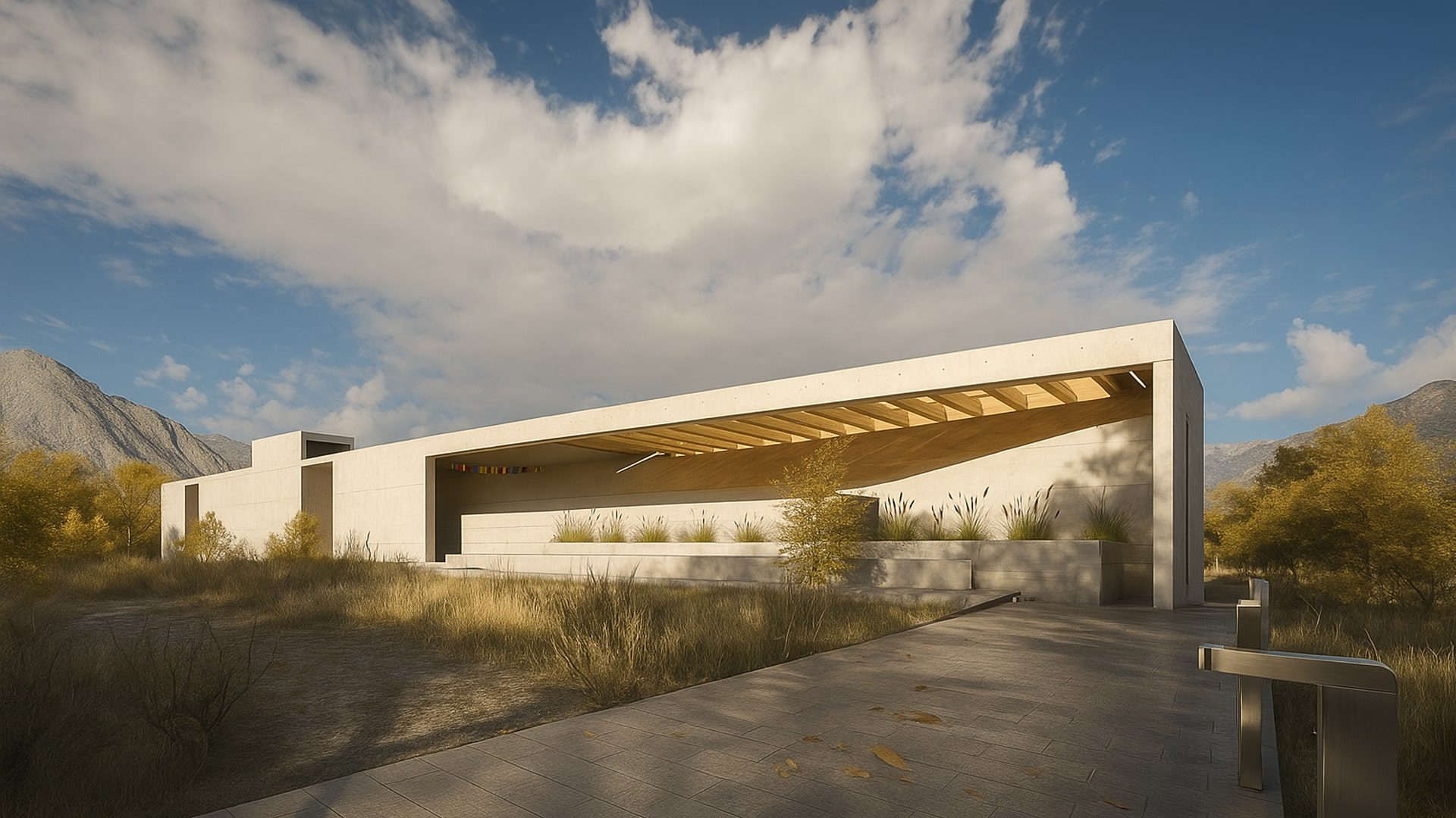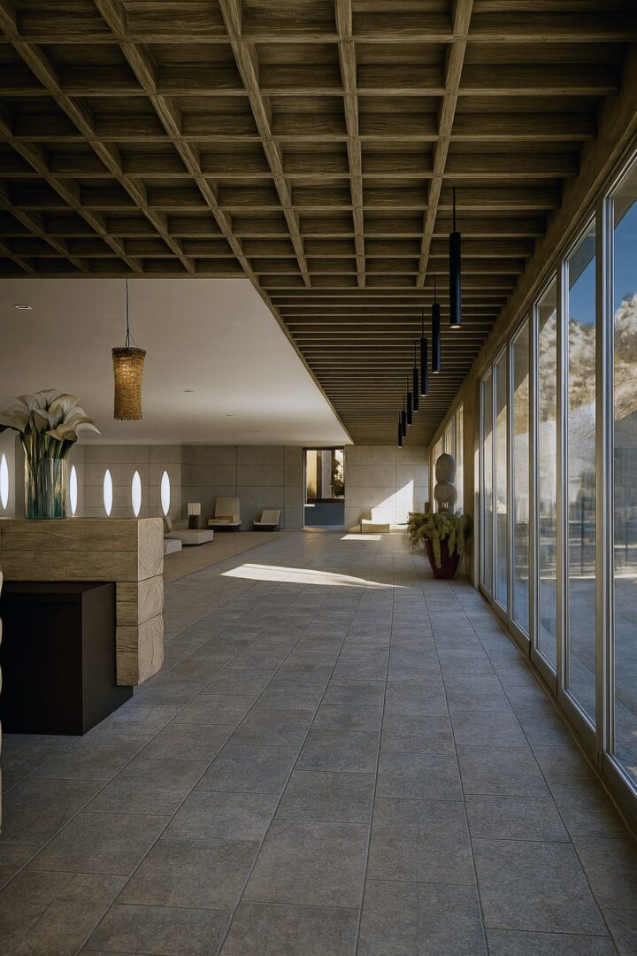 Upon your approach, the center’s imposing concrete form commands immediate attention, its monolithic presence a testament to the boldness of contemporary architecture. Yet, it is the floor-to-ceiling windows that carve out the heart of this structure, encircling a central courtyard that serves as the lungs of the building, inviting the wilderness inside and bathing every corner in the golden kiss of sunlight. The walls, in their silent majesty, engage in a perpetual dialogue with the landscape, blurring the lines between the crafted and the natural.